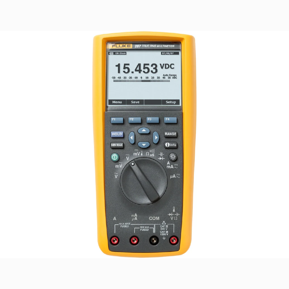 The Fluke 287 True-RMS Electronics Logging Digital Multimeter with TrendCapture quickly documents design performance and graphically displays what happens on your screen. Its unique logging and graphing capabilities mean you no longer need to download logged readings to a PC to detect a trend. The 287 packs both accuracy and convenience into a single handheld multimeter.