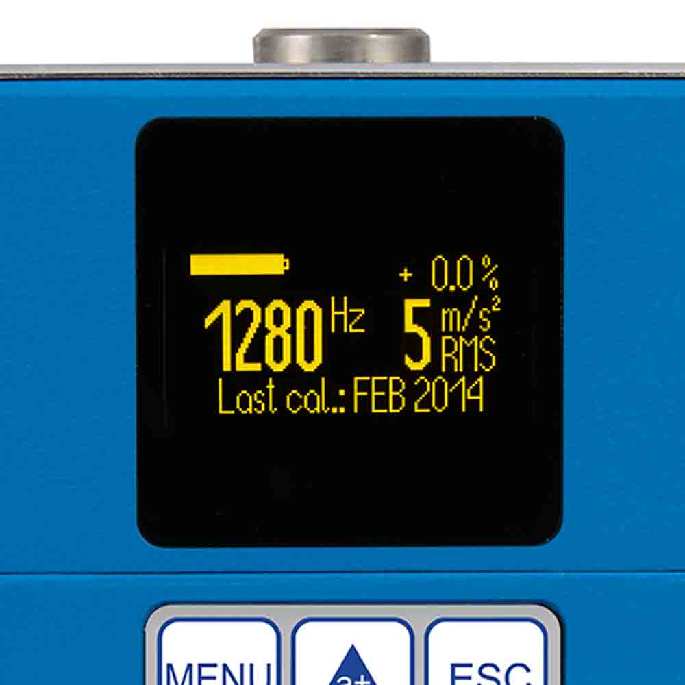 The vibration calibrator has many versatile features for field and laboratory use, including a built-in rechargeable battery, battery-saving automatic power-off function, battery charge indicator and AC power adapter for charging.
